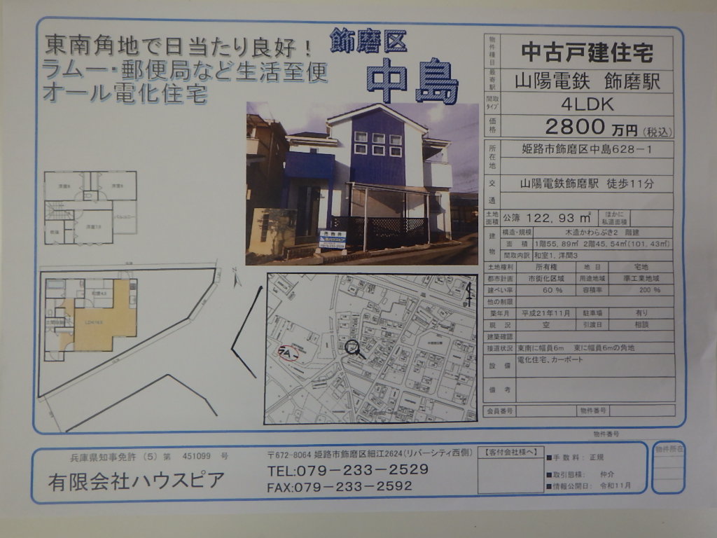飾磨区中島に生活に便利な立地に綺麗な中古戸建が出てきました。スーパーラ・ムーに近く、駅、コンビニ、病院、警察署(あんまり関係ないですかね?)も全て徒歩圏内です。内部もこだわりの箇所も多く一度内覧する価値有ります。金利の上昇や、建築費の高騰によりますます中古物件に人気が出る感じになっています。「新築はちょっと?」でお考えの方は是非この機会に内覧をお勧めします。